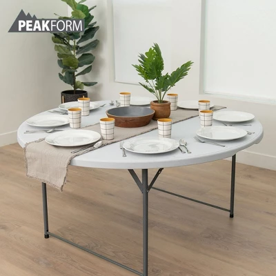 Imagine the convenience of having a durable, easy-to-clean table that you can set up and take down in minutes. No more worrying about finding a sturdy surface for your outdoor meals or indoor games. The Peakform 60-Inch Folding Banquet Table, combines practicality with elegance, offering a sleek design that fits seamlessly into any setting. The high-density polyethylene surface resists wear and tear, ensuring your table looks great and performs well for years to come.The table’s powder-coated steel frame guarantees support and stability, while its all-weather finish ensures easy cleaning and stain resistance. Foot caps provide extra protection for your floors, so you can confidently use it both indoors and outdoors. This table is designed to meet all your needs, whether you’re hosting a picnic, a party, or an impromptu gathering. It delivers a quick, spacious, and reliable surface every time, making it an essential addition to your home or event supplies.Upgrade your convenience and style with the Peakform 60-Inch Folding Banquet Table, the ultimate choice for anyone seeking a practical, portable, and enduring table solution. Enjoy the ideal blend of functionality and durability, making every occasion special. From casual family gatherings to formal events, this table adapts to your needs, providing a reliable surface that enhances your activities.