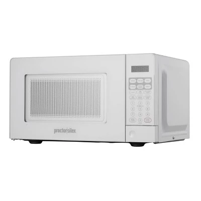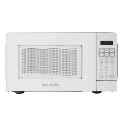 This compact Proctor Silex countertop microwave is perfect for kitchens, offices, dorms and break rooms. The green LED digital display is easy to read and the electronic control panel is simple to use. With 10 adjustable power levels and 6 one touch cooking menus, cooking and reheating food has never been easier. The 6 one touch cooking menus include, popcorn, potato, pizza, frozen vegetable, frozen dinner and reheat. Additional features include, defrost, kitchen timer, child safety lock, add 30 seconds and a removeable glass turntable.