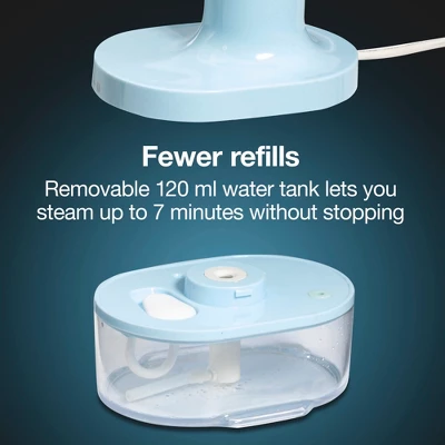 - FEWER REFILLS: Enjoy up to 7 minutes of powerful steaming without stopping. The removable 120 ml water tank of this handheld steamer holds more water, so you can steam clothing and fabrics longer.