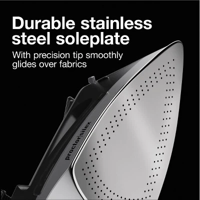 - DURABLE STAINLESS STEEL SOLEPLATE SMOOTHLY GLIDES OVER FABRICS. For reliability year after year, this steam iron has a durable stainless steel soleplate that moves easily over fabrics, while the precision tip accesses small or hard-to-reach areas.