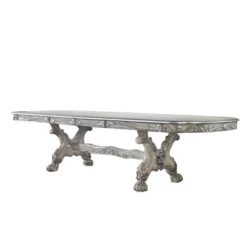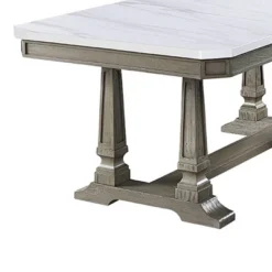 76″Wandella Marble Top Dining Table Beige Fabric/Weathered Gray Finish – Acme Furniture