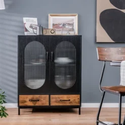 Costway Kitchen Storage Cabinet Freestanding Buffet Sideboard W/ 2 Glass Doors & Drawers