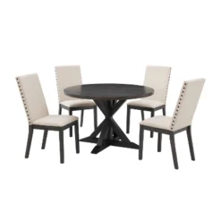 5pc Hayden Round Dining Set With 4 Upholstered Chairs Slate – Crosley
