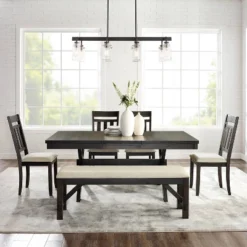Hayden 6pc Extendable Dining Set With Bench And 4 Slat Back Chairs Slate – Crosley