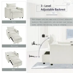 Velvet Convertible 3-in-1 Adjustable Sleeper Sofa Chair With Pullout Bed And Cup Holder