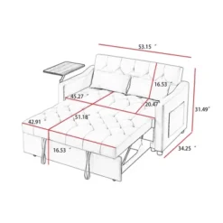 Velvet Sofa Bed With Tufted Back And Seat, 360° Side Table, Adjustable Backrest And Foam Cushion For Living Room