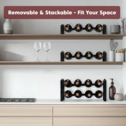 Itopfox Stackable Wine Rack Countertop, Sturdy Freestanding Wine Bottle Holder 2 Tier Tabletop Wine Stand For Pantry Bar Metal Wine Storage Organizer