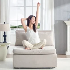 Mjkone Linen Pull Out Floor Sofa Bed, 3-in-1 Loveseat Sleeper Sofa Bed