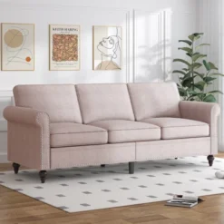 Mjkone Linen Fabric Modern 3-Seater Sofa Couch With Rivet Design