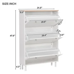 Narrow Design Shoe Cabinet With 3 Flip Drawers, 3 Hooks And Adjustable Panels – ModernLuxe