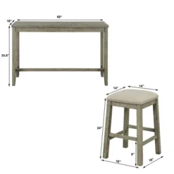 Rustic 4-Pieces Counter Height Dining Set With Fabric Padded Stools And Socket-ModernLuxe