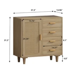 Wooden Cabinet With 4 Drawers And Rattan Decorative Doors, Natural – ModernLuxe