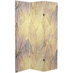 6″ Double Sided Ethereal Leaves Canvas Room Divider Gold – Oriental Furniture