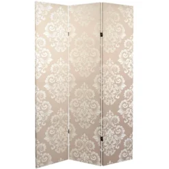 6″ Double Sided Damask Canvas Room Divider Black/White – Oriental Furniture