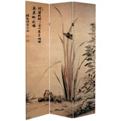 6″ Double Sided Cranes Room Divider Beige – Oriental Furniture
