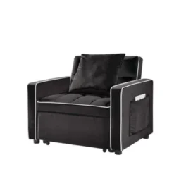 55.5″ Modern Pull-Out Sleep Sofa – 2-Seater Loveseat With Lumbar Pillows & Side Pockets