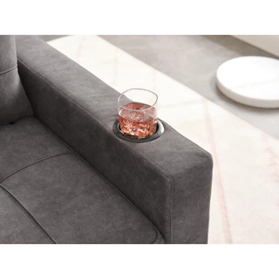 - USB AND CUP HOLDERS: There are 1 USB charging port and 1 Tapy C interface on the left armrest of the sofa for various charging cables, which can provide continuous power supply for your phone. There is a convenient cup holders design on the seat back to place drinks and cups. There are 4 side pockets and built-in cup holders to meet your daily needs.