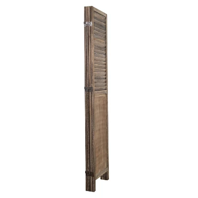 Rancho Shutter Four Panel Room Divider with a classic Louvered slat design. Made of Paulownia Wood in natural torch carbon finish, this panels will bring the vintage farm house feel to your house. The panels are connected with dual two-way hinges so you can adjust or fold to your liking. Easy to clean, sturdy and durable.