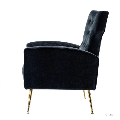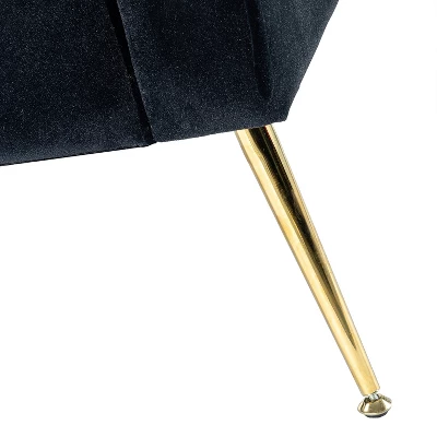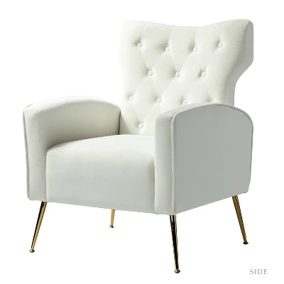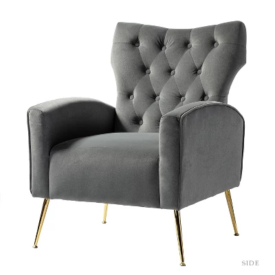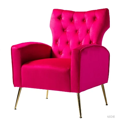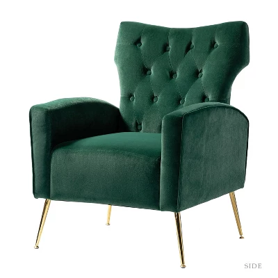 Whether you need a spot to curl up with a good book or somewhere to lay out clothes for the next day, this streamlined accent chair is a versatile addition to your space. This is the classic and contemporary style accent chair with wingback design. Made with premium velvet fabric, comfortable for skin touch, and features an on-trend solid hue that’s bound to blend in with your color scheme. High-density foam filling with a solid and manufactured wood frame provides comfort and support. The slender polished golden metal legs bring modern design and add to the timeless fashion of this piece.Plus, this armchair is defined by an iconic silhouette with a dramatic button tufted back and piped edges, while the chair features detail stitching for a tailored touch. It’s the perfect pick for living room, office room and bedroom.Item Size: 28″Wx32.5″Dx37″H, Seat Size: 20″Wx22″Dx18″H