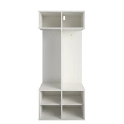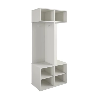 - The 4 lower cubbies are perfect for shoes and toys while the 2 upper cubbies can hold hats or baskets. Hang coats, back packs, and hats on the 4 metal hooks