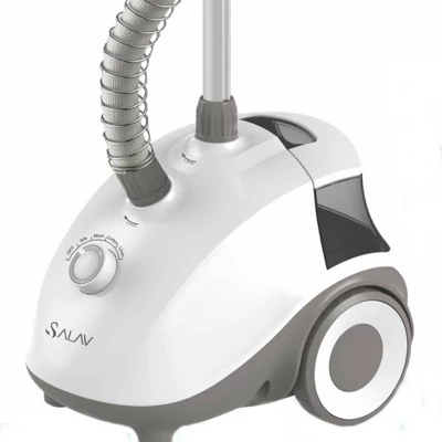 The SALAV GS24-BJ Performance Garment Steamer is a powerful 1500 watt garment steamer featuring a unique stainless steel plated nozzle and a folding adjustable hook and hanger which extends to perfectly fit your clothes and folds up for easy storage. Moving from room to room is easy with the roll caster and compact design.The GS24-BJ contains a double insulated woven hose to maintain steam temperature and regulate hose surface heat. The ergonomic steam nozzle delivers strong, continuous steam and the multiple steam settings will soften and straighten even the toughest fabrics. The GS24-BJ also has an easy to fill, translucent water tank with 1.5L capacity that provides over 46 minutes of continuous steam and heats up in a quick 45 seconds.