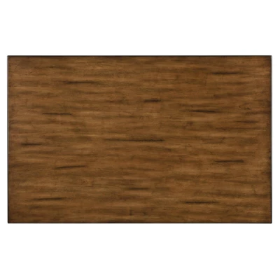 Contemporary design with a rustic aged toffee colored finish. Crafted of solid hardwoods with finger joint construction for durability. The finish also includes hand applied aged cracks and distressing in the wood to give an authentic rustic finish. Trestle style design, with true trestle construction with lower support rail attaching through the “X” leg base for added stability. Ideal for use with matching dining bench. Note finish and measurements may vary slightly. Assembly required. Arrives to your door by parcel delivery service. W-60”, D-38 ¼”, H-30”