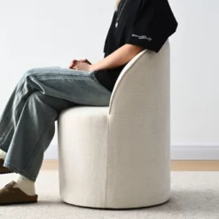 - Upholstered in premium boucle fabric for a soft, cozy texture and high-end look.