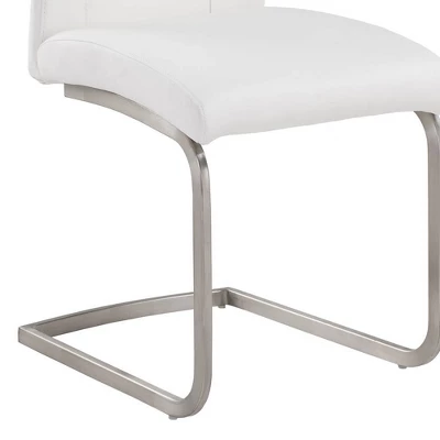 The Armen Living Evelyn contemporary dining chair is a stylish piece sure to enhance the aesthetic of the modern household. This beautiful chair features a brushed stainless-steel frame that assures an unmatched degree of durability without compromising on style. The Evelyn’s ergonomic back and seat are upholstered with high-grade faux leather sure to provide an exceptional degree of comfort. The Evelyn dining chairs are ideal when paired with the complementary dark sonata base and clear glass topped Evelyn dining table. This piece provides both versatile style and comfort with a contemporary and modern design that can easily be integrated into your home’s current décor. The plush padded seat with high-density foam will provide you with all-day comfort. The cushion high back is ideal for posture alignment and an unmatched support for days on end. The foundation of the product is supported by stainless steel for a chic and stylish aesthetic without comprising the practicality and functionality of this item. We stand by the quality, the craftsmanship, and the integrity of our product by offering a 1-year warranty for all our products. We want our customers to enjoy our product and we will always be there to help with our top-notch customer service support. Product Dimensions: 23″W x 17″ D x 39″H SH: 19″