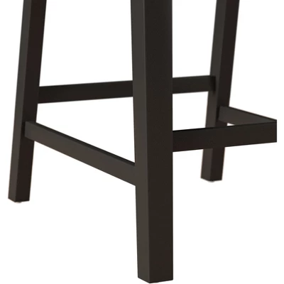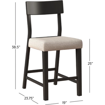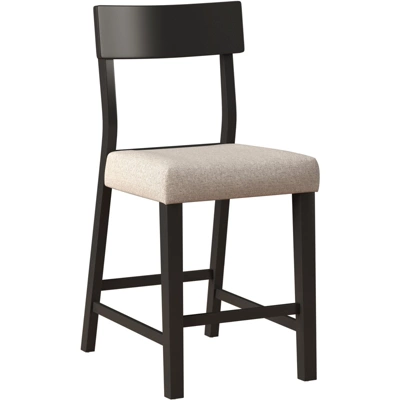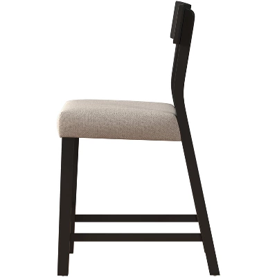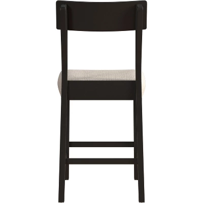Defined by simple practicality, this counter height stool is an ideal choice for modern or farmhouse settings. Constructed of wood with a black finish, this stool features an open panel back and footrest for your back and foot ease. The non-swivel counter stool seat is covered in a 100% polyester, taupe colored fabric adding a touch of sophistication. It will be a perfect addition to your counter or kitchen island to provide a comfortable seating experience. Assembly required.