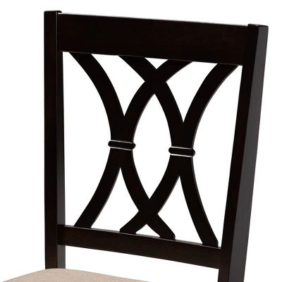 Featuring an exquisitely crafted frame, the Reneau dining chair adds elegance to any dining space. This solid rubberwood chair displays a sleek finish that complements the polyester fabric upholstery. Designed to add both comfort and style to your dining space, the chair features a plush foam-padded seat, as well as a stunning cut-out design on its back. Tapered feet add a classic, refined touch. Built for long dinners with family and friends, the Reneau is sure to enhance any dining experience. The Reneau dining chair is made in Malaysia and requires assembly.