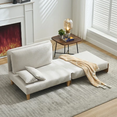 This multi-functional sofa bed is specially optimized for small Spaces. It features a solid wood frame and high-elastic sponge cushions, allowing a single person to easily switch between sofa and bed modes. It is equipped with 3 adjustable waist pillows for additional support, and a side Velcro storage bag for conveniently storing small items such as remote controls. The classic color scheme is suitable for various home styles. It can be used as a comfortable and relaxing sofa or instantly transformed into a single bed, perfectly meeting the multi-scenario needs of apartments, guest rooms or offices.