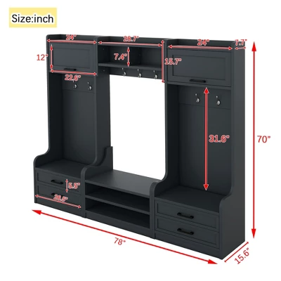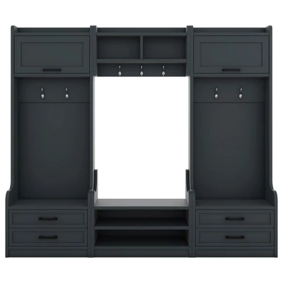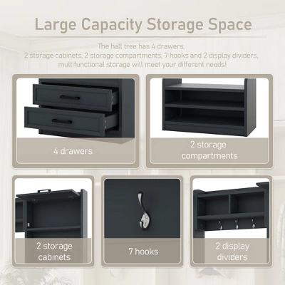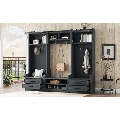 Transform your entryway with this multifunctional hall tree combining 4-in-1combo, 7hooks, 4drawers. Crafted with Particle Board+MDF, its Antique Blue finish adds rustic charm to farmhouse or modern decor. Perfect for mudrooms, living rooms, or hallway storage solutions.