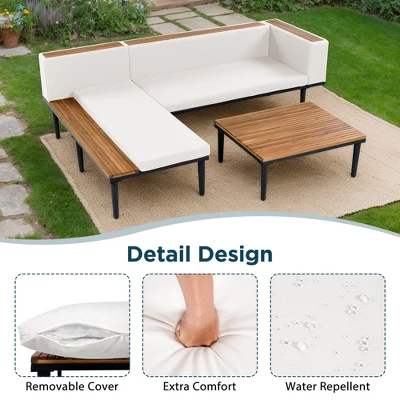 - Functional details: Designed for convenience, the extended sofa includes a solid acacia wood side table, providing extra space for drinks, books, or décor. Perfect for lounging with everything within reach.