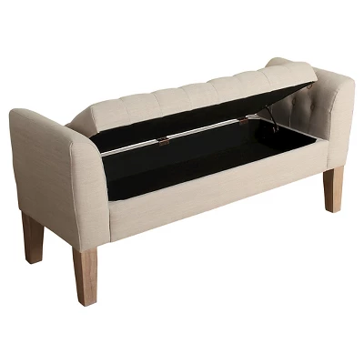 Designed as a part of the Kate collection to be a decorative settee or a functional storage bench. Premium details include allover button tufting, rich linen woven fabric, and wood legs with white washed finish. Available in soft, sophisticated colors. You’ll love the added storage option at your entryway, living room or foot of your bed. Matching Kate Accent Chair also available. Easy to assemble and maintain, spot or wipe clean as needed. This settee bench can support up to 250 pounds. Please note that fabric and wood colors may appear slightly different due to variations in lighting or screen settings.