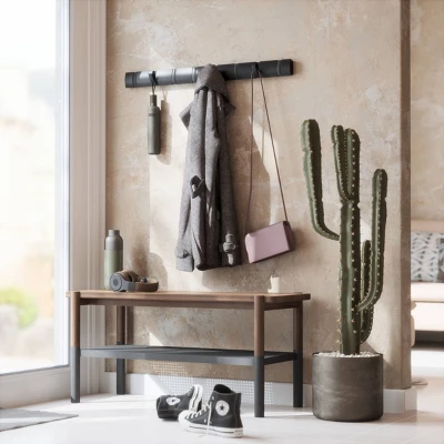 • MULTI-PURPOSE WALL MOUNTED HANGER: More than just a coat rack, Umbra Flip is a unique wall mounted rail that features retractable hooks for hanging a variety of items including coats, scarves, purses, umbrellas, towels, clothing and more