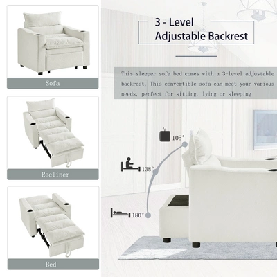 3-in-1 Convertible Sleeper Sofa ChairPerfect for dorms, apartments, and home offices, this multi-functional sofa chair combines comfort, versatility, and style in one compact design.Product Features