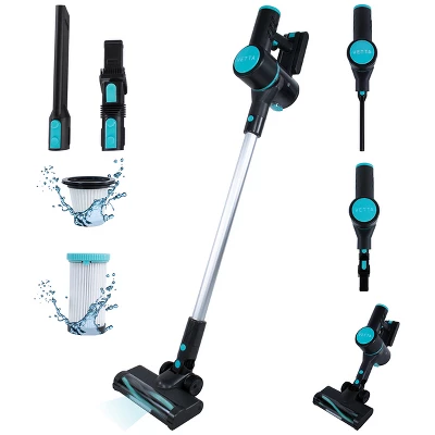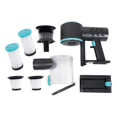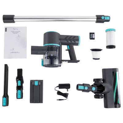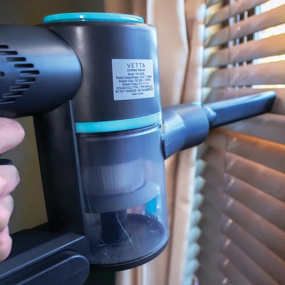 Cleaning is a breeze with this VETTA Cordless Stick Vacuum. With up to 40 minutes of run time and dual suction modes, this vacuum can handle furniture, vehicles, floors, and surfaces of all types. The detachable brush head makes getting to those hard-to-reach places no longer a bother. And pet hair is no match for its 23 kPa suction power. Keep allergies at bay with washable HEPA filters.