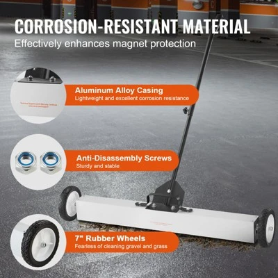 Long-Lasting Performance: Crafted from high-quality materials such as aluminum, plastic, magnet, and iron, the push-pull magnetic sweeper is built to withstand the rigors of demanding worksites. Its durability guarantees long-term, reliable performance, providing you with a valuable tool for ongoing cleanup tasks.