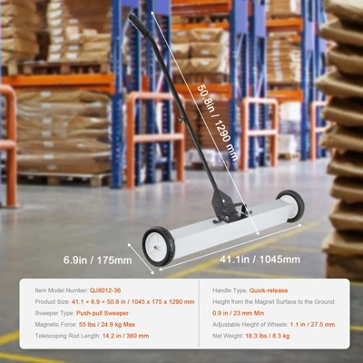 Precision Cleaning: The extra-wide magnetic rectangle of the 36-inch sweeper magnet ensures thorough coverage and efficient collection of metal debris. Its superior magnetic strength attracts even small metal particles, leaving the worksite clean and free of potential hazards.
