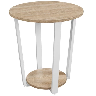 This stylish multipurpose side table puts user’s needs first. Of a rustic brown round shape wooden/metal end table design, it is easy to fit almost all the space. With magazines, chips, laptops, glasses, handbags, tea/coffee cups at hand on the table, you are free to enjoy everyday couch time, bedtime, patio leisure or entryway convenience. An attractive addition to your living room, bedroom, patio/balcony and hallway. Make cleaning a breeze. The overall dimension is: 19.7 x 19.7 x 22.2’’ (L x W x H); Top Platform: 19.7’’ (Dia.); Bottom Platform: 13.8’’; Distance between top and bottom platforms: 19.7’’. Unit of measure: inch. Please see image for exact measurements.