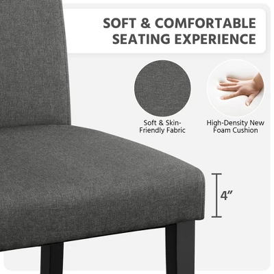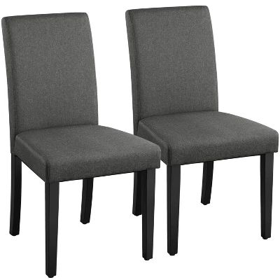 - Add comfort and style to your dining space with these upholstered chairs. Built with solid wood frames and polyester fabric, they offer lasting support and softness. Armless design ensures easy movement, while foot pads help prevent floor scratches. A sleek, modern look complements a variety of home interiors.