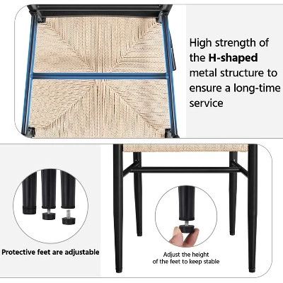 - 【Premium Materials, High Weight Capacity】Situated atop four metal legs, this pair of dining chairs features a natural hand-woven rope seat and sturdy integral backrest, offering you a high load capacity of up to 331 lb.