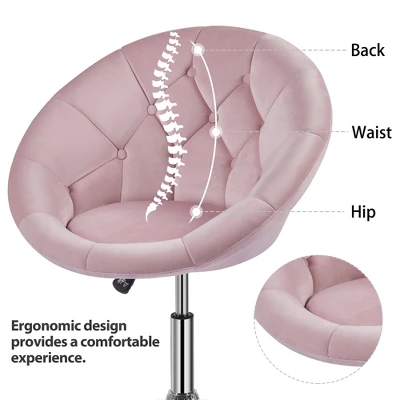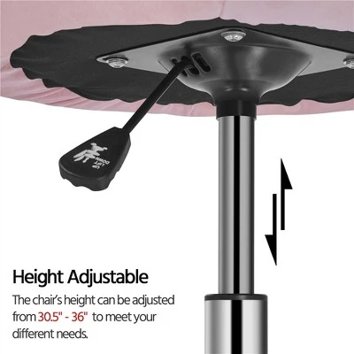 - The swivel round back seat is wrapped in flannelette upholstery and padded with foam. The metal base is/ has a sturdy construction/ finished in a shining chrome, and the swivel function puts that perfect spin on your day, whether you’re working or studying in your room. In addition, Its polished metal frame features an adjustable height design spanning 12.6″ to 18″ tall, so it can meet your various requirements of height and use.