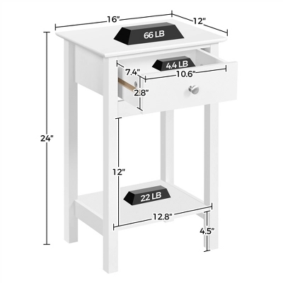 - 【Top Choice for Limited Space】Featured by great storage capacity and a compact size measuring 16 x 12 x 24’’ (L x W x H), this 2-layer minimal bedside table is designed for limited space, such as the corners or the narrow vacancy by the sofa or bed.