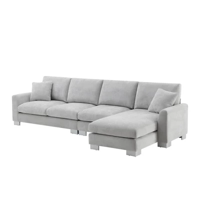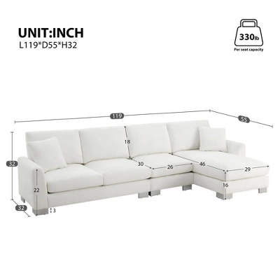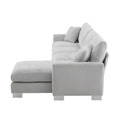 This sofa with chaise is perfect for those who want to relax and unwind in style after a long day. The chaise offers a luxurious spot to stretch out, adding both comfort and elegance to your living space. Its sleek design is complemented by silver aluminum feet, which enhance the sofa’s overall look and create a refined, coordinated color scheme. These high-quality feet also improve the sofa’s durability and stability, elevating the feel of your home. Combining style and functionality, this sofa is a sophisticated addition to any modern living area, making it easy to enjoy both comfort and visual appeal every day.